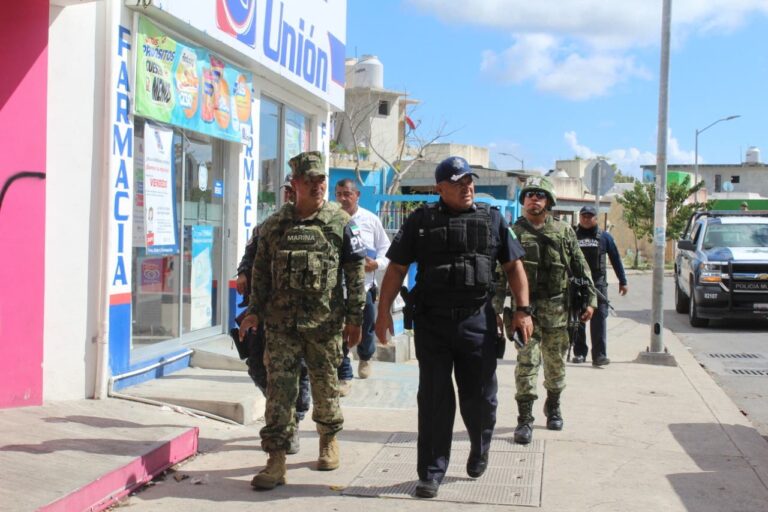 Elementos de la Policía y Militares de Playa del Carmen recorrieron diversos puntos de Playa del Carmen.