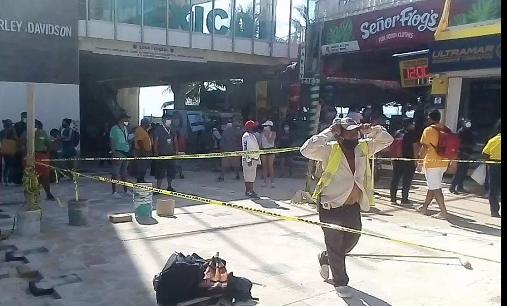 Es al pie del muelle Navega en Playa del Carmen, que en vez de hacer fila con sana distancia, los turistas y trabajadores se amontonan para comprar y ofrecer boletos, respectivamente .