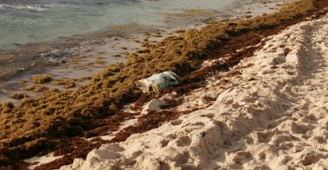 Empleados de este centro hotelero, que se disponían a realizar el rastrillado del abundante sargazo acumulado en las orillas de la playa debido al oleaje, se percataron del enorme bulto depositado en la orilla.
