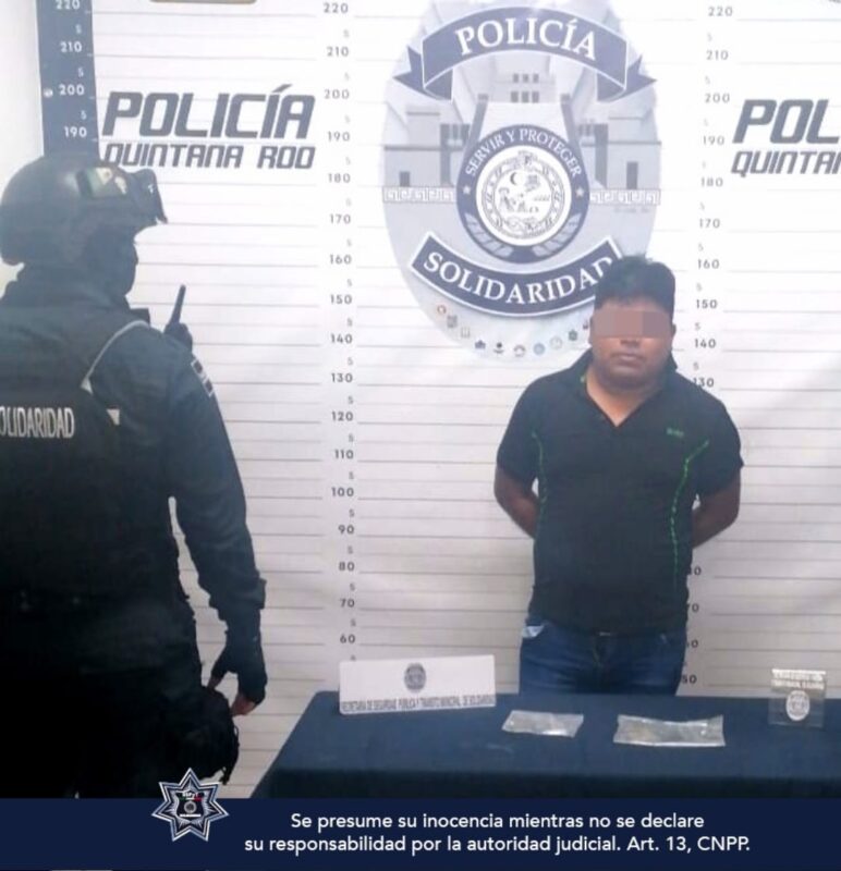 A través de un comunicado difundido esta tarde, la Secretaría de Seguridad Pública y Tránsito Municipal de Solidaridad (SSPyTMS) informó que aseguraron a los tres sujetos en posesión de varios narcóticos como marihuana, cristal y piedra.