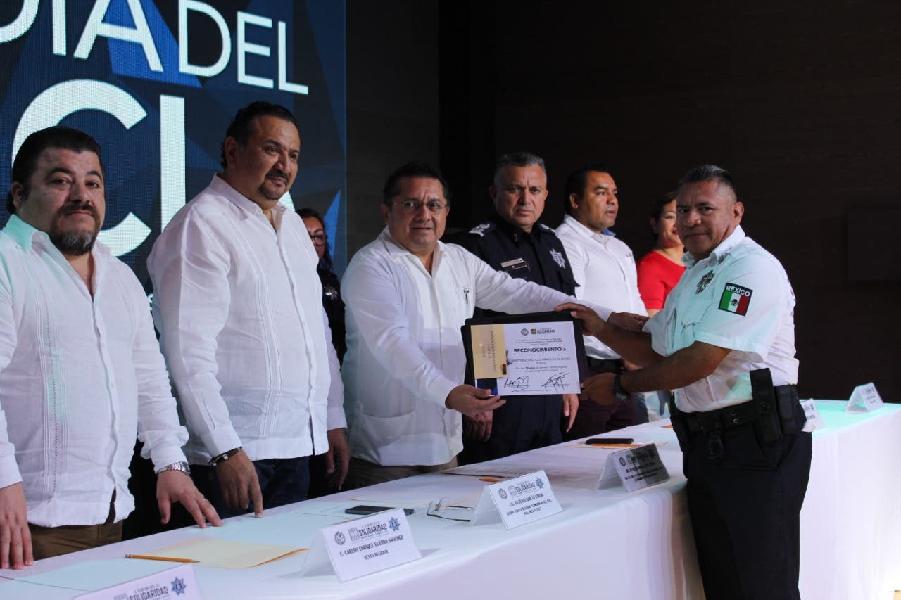 En el marco del festejo a los elementos de policía en Solidaridad, el director general de Seguridad Pública y Tránsito, Martín Estrada Sánchez, sostuvo que a través de la Policía Municipal, el gobierno de Solidaridad que encabeza, Laura Beristain Navarrete, va por la consolidación de una corporación sólida, eficiente y confiable, que garantice la seguridad y la paz de todos los ciudadanos.