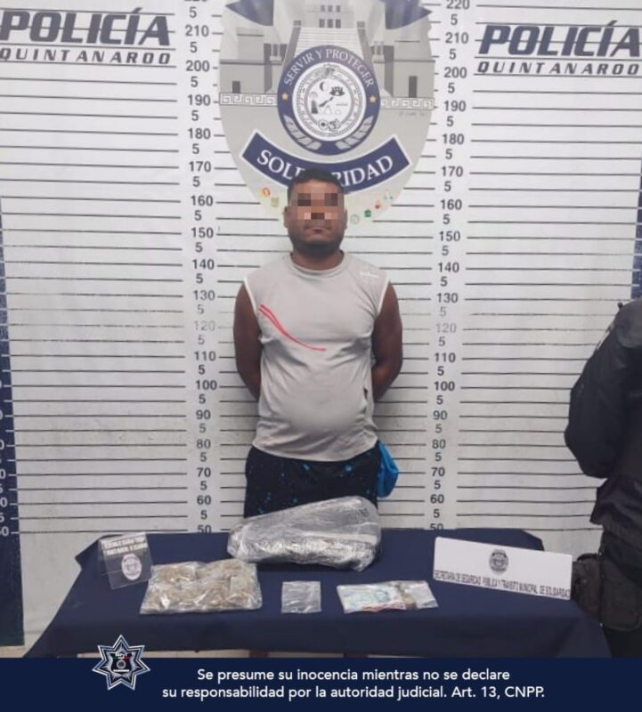 El sujeto identificado como Luis «N» de 35 años de edad, procedente de Veracruz, fue asegurado la noche del 21 de octubre sobre la calle 90 entre avenidas 20 y 15 de la colonia Colosio, tras ser sorprendido manipulando con las manos posible marihuana.