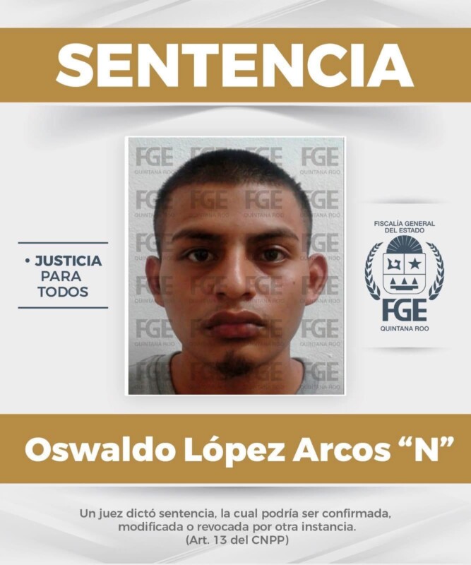 Un juez dictó una sentencia de 50 años de prisión contra Oswaldo López Arcos, tras encontrarlo culpable de homicidio calificado y homicidio en grado de tentativa por hechos ocurridos en 2020 en Playa del Carmen.