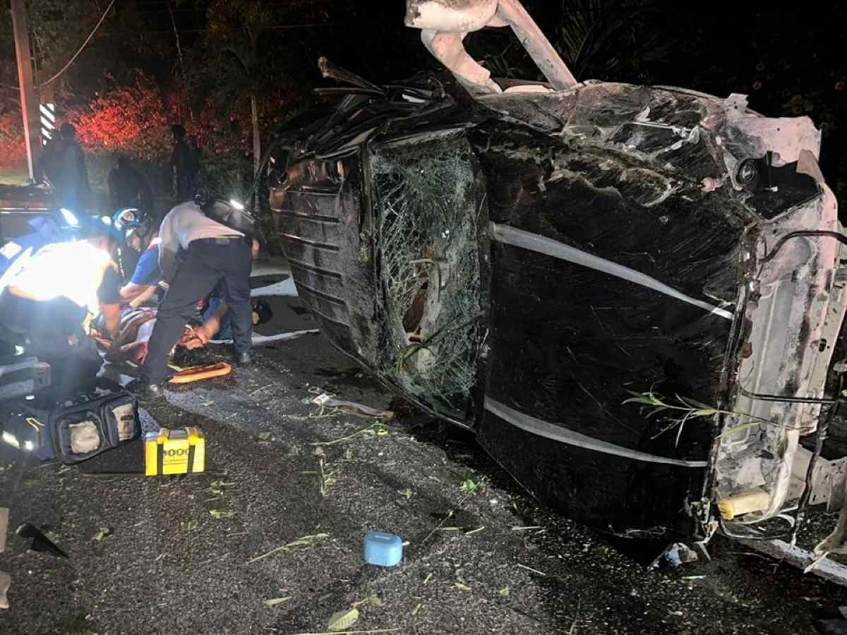 El percance dejó a cuatro personas lesionadas, siendo el chofer y el copiloto los que sufrieron heridas graves, mientras que los pasajeros de la parte trasera resultaron con golpes menores.