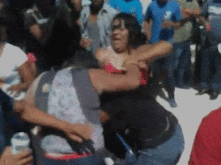 El video muestra la manera en la cual, las mujeres se empujan, se jalan los cabellos y se golpean entre sí, pero decenas de personas que observaban el pleito, lejos de tratar de separarlas para evitar que la riña continuara, se divertían y azuzaban a las mujeres a golpearse.