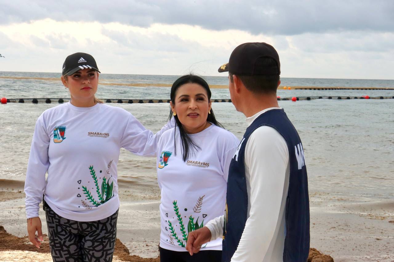 La presidenta municipal Blanca Merari Tziu Muñoz agradeció esta mañana la participación de poco más de 70 colaboradores del Ayuntamiento y 30 elementos de la Marina-Armada de México en una nueva jornada del programa “Todos contra el sargazo”.