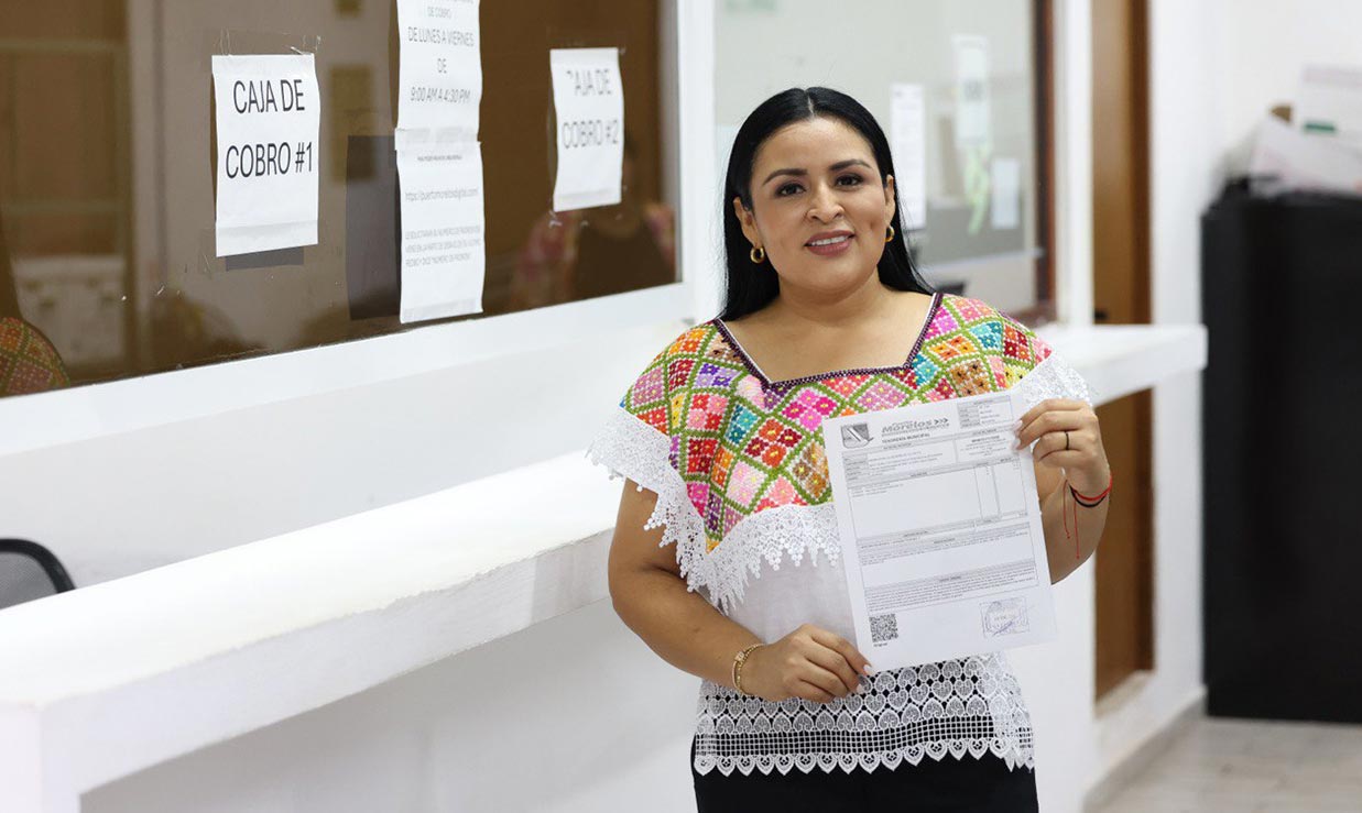Luego de acudir a la Dirección de Ingresos de la Tesorería Municipal para pagar el Impuesto Predial correspondiente al ejercicio fiscal 2026, la presidenta municipal Blanca Merari Tziu Muñoz se manifestó contenta y agradecida con los contribuyentes que han respondido al llamado para contribuir.