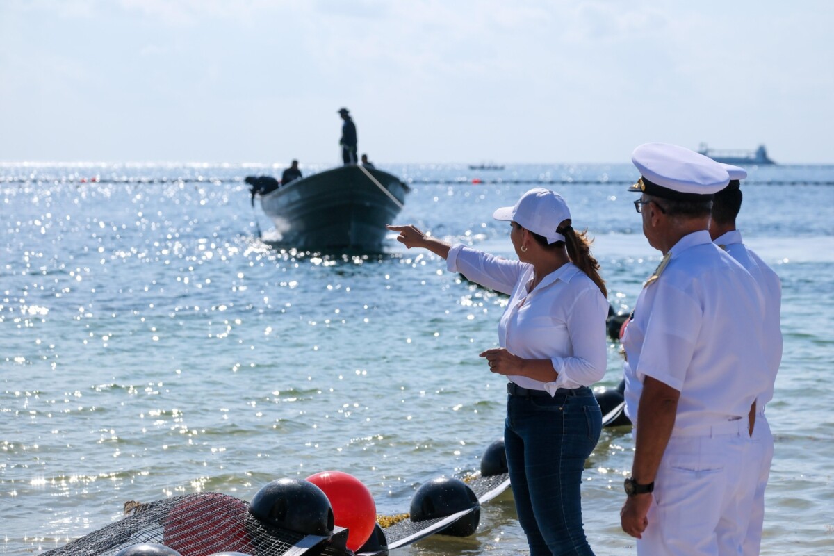Les digo con firmeza, añadió la gobernadora: No vamos a permitir que este fenómeno detenga nuestro destino de bienestar, ni nos robe una de las cosas más valiosas que tenemos: nuestra naturaleza viva. Ya lo estamos haciendo, coordinados con la Secretaría de Marina, con los municipios, con la sociedad civil, con el sector turístico, con científicas, con trabajadoras y trabajadores. Estamos desplegando una estrategia integral: barreras, recolección, limpieza, valorización y, sobre todo: concienciación.