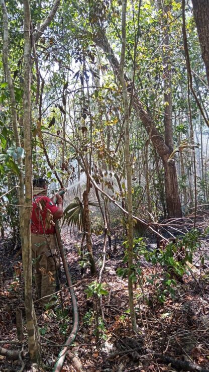 El segundo está ubicado en el kilómetro 1.5 de la carretera a Francisco May, atrás del rancho conocido como Mangotas, en el que laboran tres integrantes de la Comisión Nacional Forestal (Conafor) con un carrobomba y dos elementos del cuerpo de Bomberos de Puerto Morelos con una pipa.