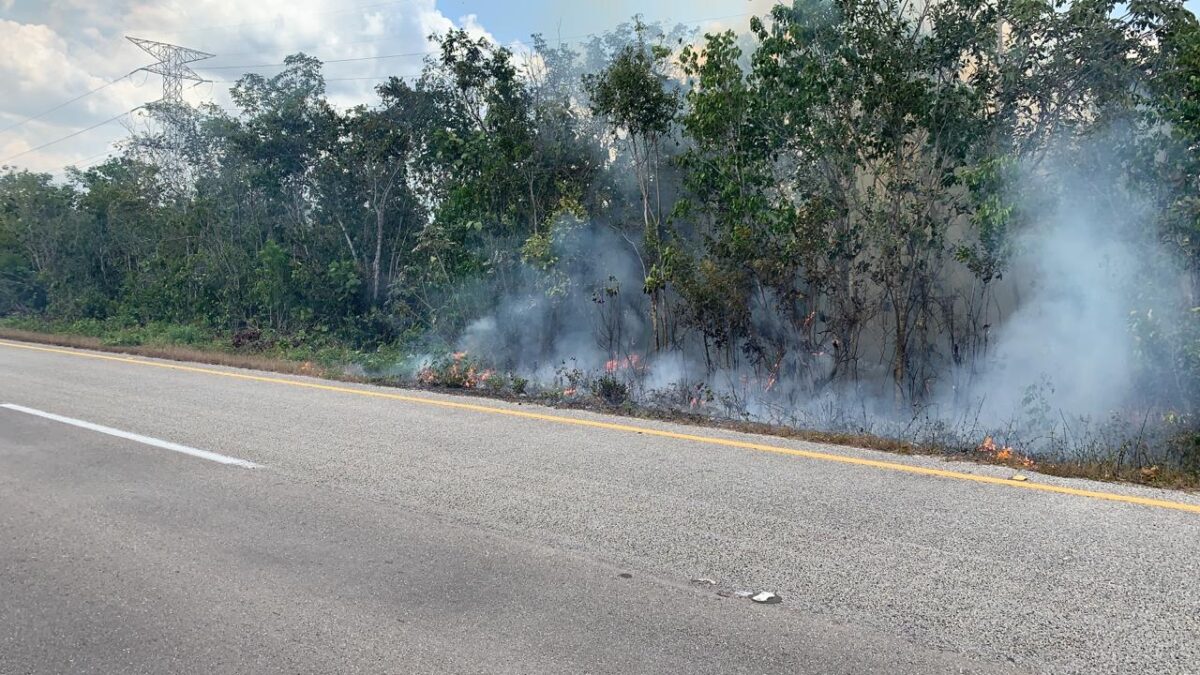 Asolan incendios forestales a Puerto Morelos, en el municipio se han atendido 8 incendios forestales y 9 conatos en la actual temporada 2021, en su mayoría a orilla de carretera que han sido provocados por la mano del hombre, señaló la Coordinación municipal de Protección Civil.
