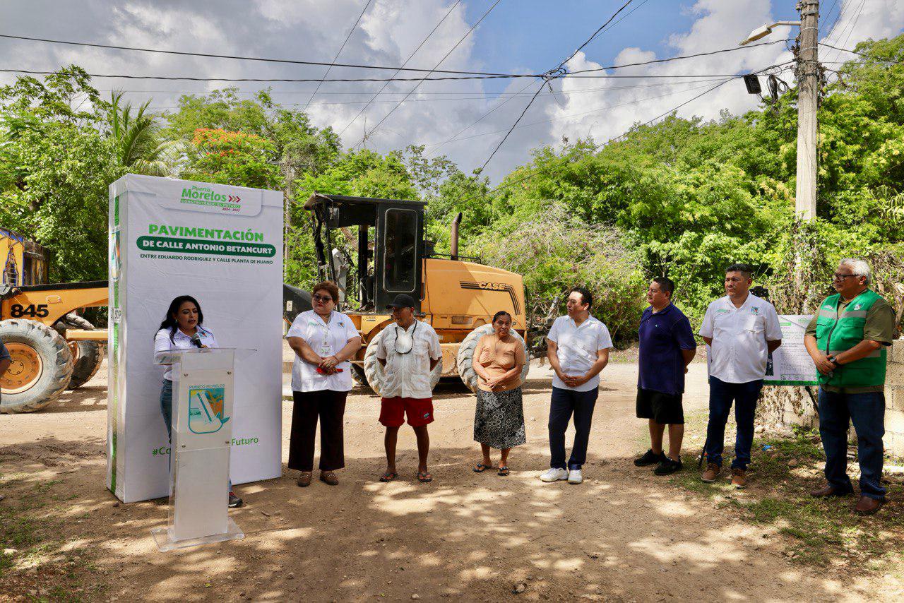 La presidenta municipal Blanca Merari Tziu Muñoz puso hoy en marcha diversas obras en esta Delegación, que incluyen trabajos de pavimentación y la construcción y limpieza de pozos de absorción.