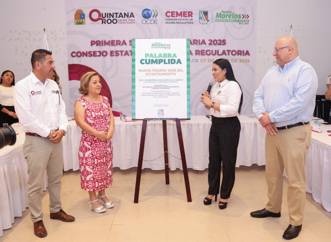 La presidenta municipal Blanca Merari Tziu Muñoz agradeció el apoyo recibido para que Puerto Morelos sea uno de los dos municipios del Estado que reporta mayor avance en materia de mejora regulatoria, “parte fundamental de la agenda de los entes públicos en los tres órdenes de gobierno”.