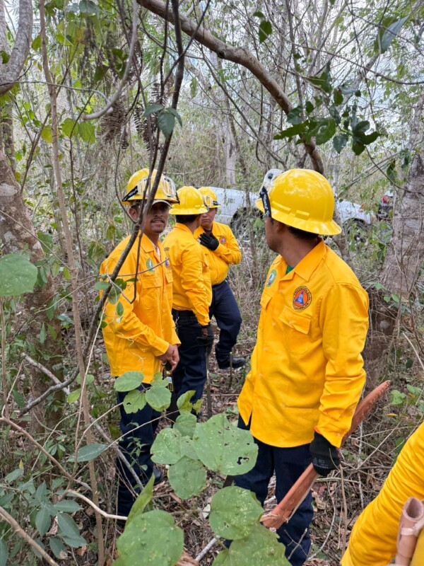 “Cabe señalar que las brigadas reciben machetes, rastrillos, cascos, googles y motosierra; en caso de que el fuego se salga de control, se solicita apoyo a la Conafor, que nos envía personal y maquinaria”. Explicó que el ejido Leona Vicario participa con una brigada de cinco elementos, con equipo y vehículo, para apoyar las labores de combate.