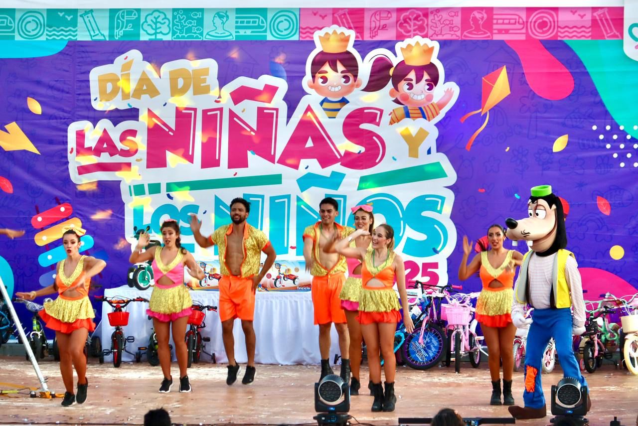 En el parque principal de la Comunidad se reunieron más de mil niñas y niños acompañados de papá y mamá que celebraron en grande con un show de Crazy Kids de música, magia y diversión, dulces, juguetes y la rifa de las bicicletas.