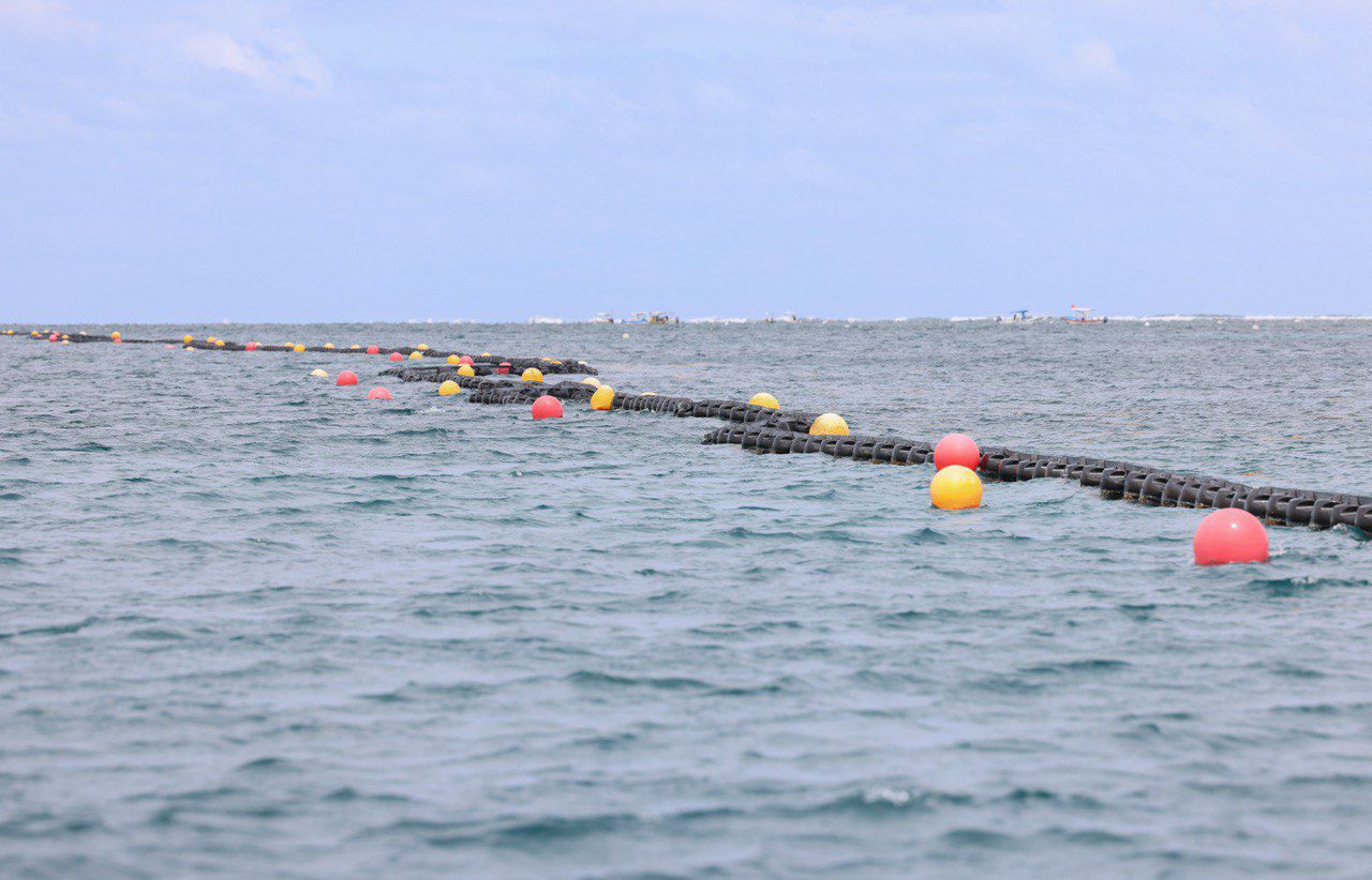 Acompañados por el Contralmirante Topiltzin Flores Jaramillo, encargado de la estrategia de combate al sargazo por parte de la Secretaría de Marina, se revisaron las condiciones operativas de la barrera, así como las acciones coordinadas para fortalecer la protección de las playas.