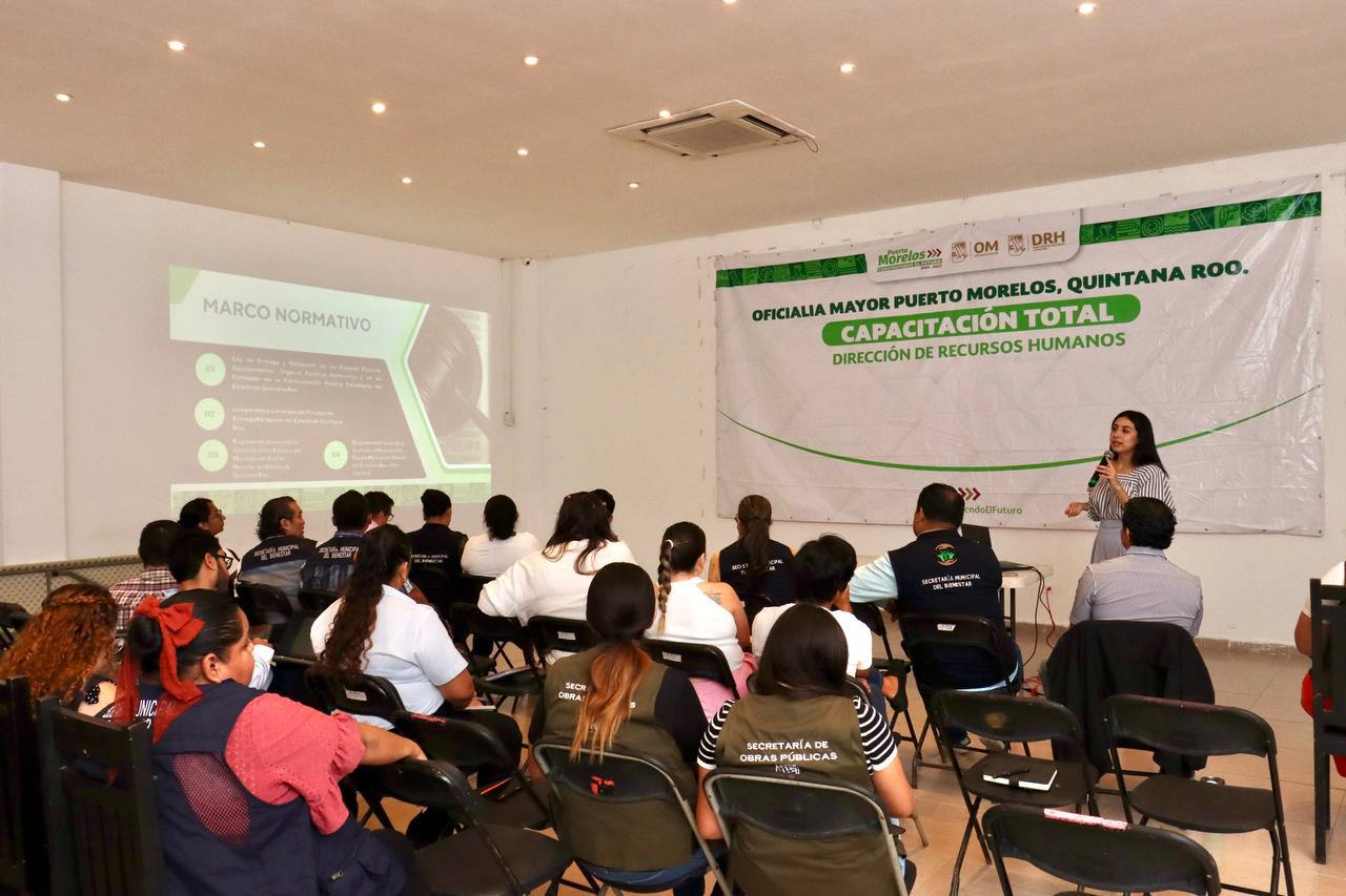 Con el objetivo de fortalecer la profesionalización del personal del Ayuntamiento de Puerto Morelos, la Dirección de Recursos Humanos, a través de su área de Capacitación, continuará impulsando acciones formativas dirigidas a los servidores públicos municipales, afirmó la presidenta municipal Blanca Merari Tziu Muñoz.