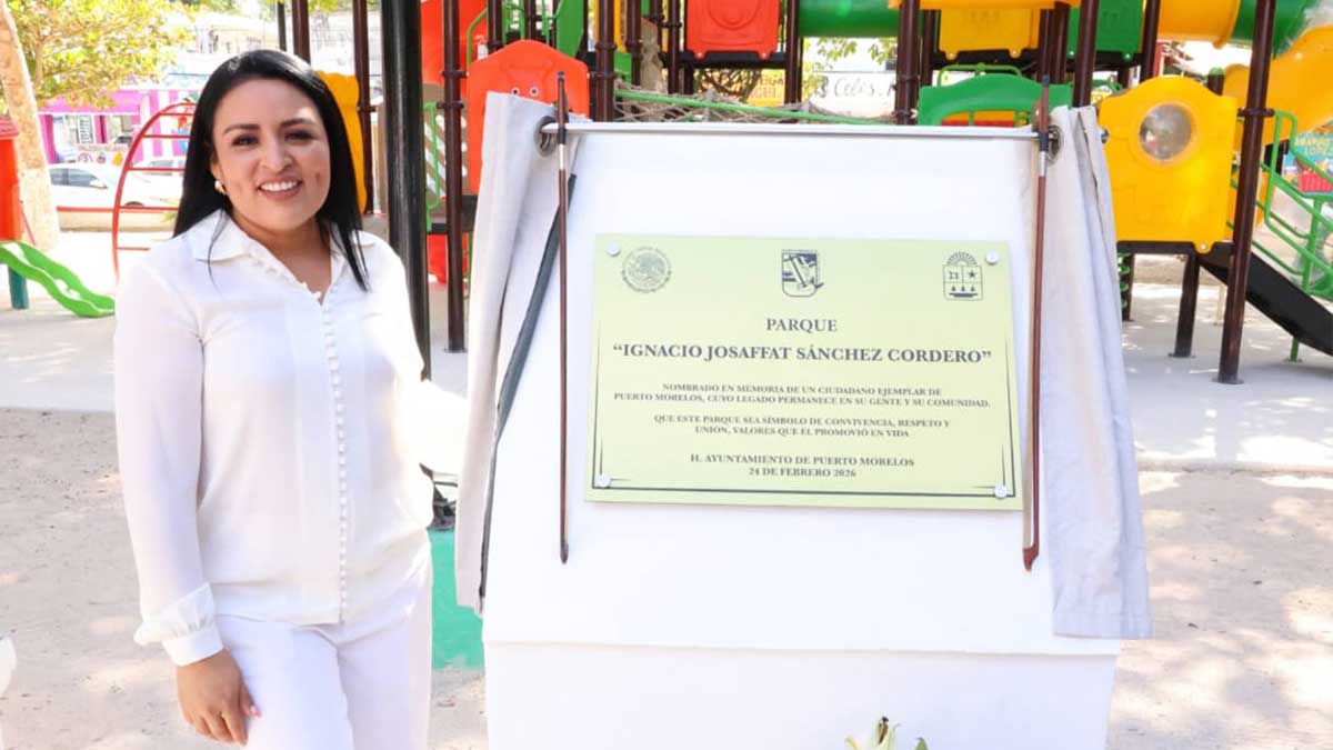 La placa porta la siguiente leyenda: “Nombrado en memoria de un ciudadano ejemplar de Puerto Morelos, cuyo legado permanece en su gente y su comunidad. Que este parque sea símbolo de convivencia, respeto y unión, valores que él promovió en vida.”