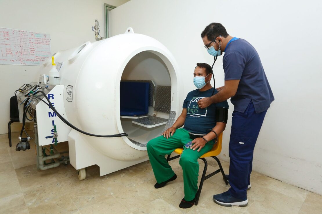 El Sistema DIF Quintana Roo a través del Centro de Rehabilitación Integral de Quintana Roo (CRIQ) ofrece servicios especializados en rehabilitación a personas en situación vulnerable, es así que se atendió de manera urgente a un paciente de 38 años edad con oxigenoterapia en la cámara hiperbárica.
