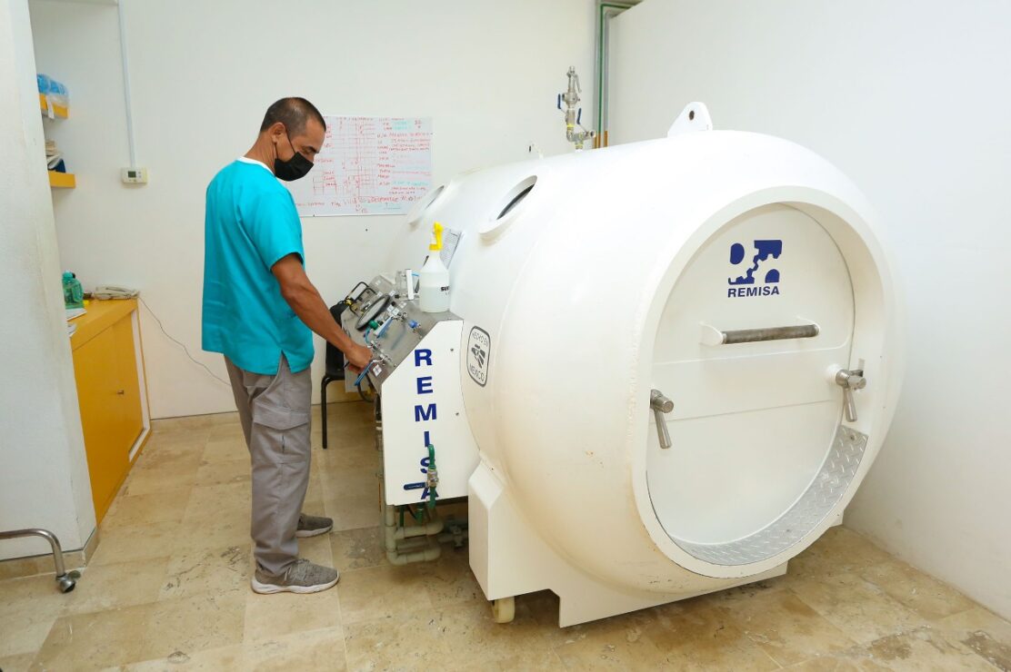 Es así que el CRIQ perteneciente al DIF Quintana Roo, es la única unidad médica del Gobierno del Estado que cuenta con este servicio de cámara hiperbárica, que es una unidad de tratamiento especializada en aumentar la presión atmosférica en un espacio determinado para uso de oxígeno medicinal en beneficio del paciente, tratamiento indicado para los buzos que sufren accidente por descompresión.