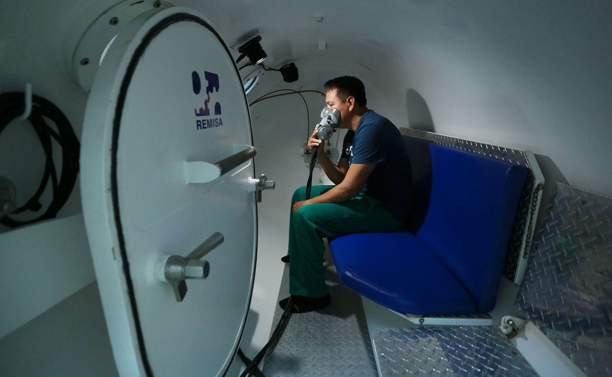En ese sentido, el domingo pasado se atendió de manera urgente a un pescador de 38 años de edad de la Cooperativa del Banco Chinchorro, quien sufrió un accidente de buceo y requería atención médica especializada en oxigenoterapia en la cámara hiperbárica por descompresión secundaria. Esta persona recibirá en total 3 sesiones.