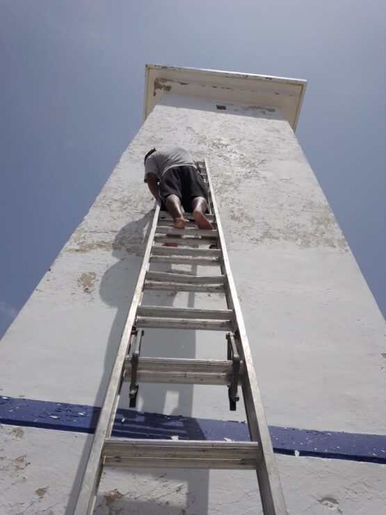 En este sentido, el funcionario municipal informó que en esta ocasión se llevaron a cabo labores de rehabilitación al símbolo más emblemático con el que se distingue a Puerto Morelos, es decir, su faro inclinado.
