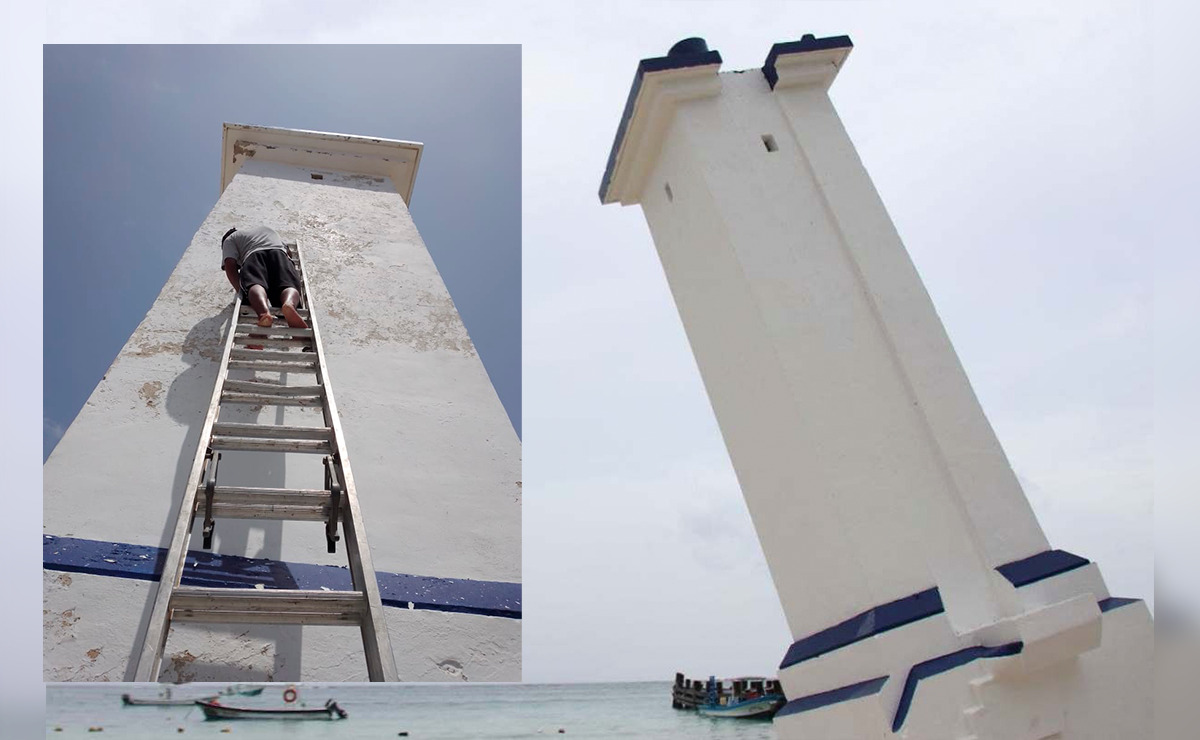 Embellece gobierno de Puerto Morelos el emblemático faro inclinado