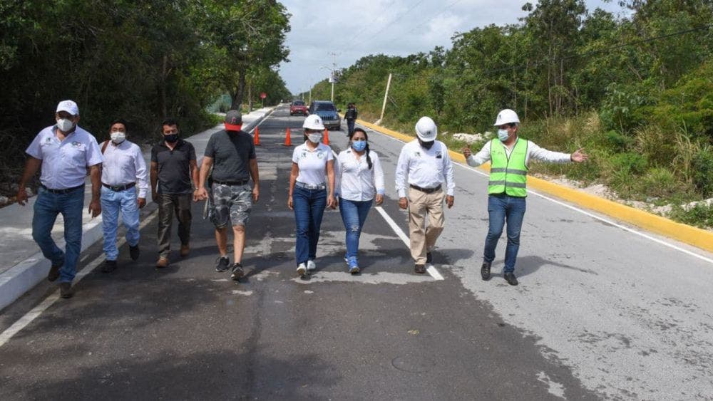 Acompañada por el secretario general del ayuntamiento, Miguel Ángel Zetina Cuevas, y la regidora Elda Cahuich Fuentes, destacó ante habitantes que su administración se ha dado a la tarea de abatir rezagos en materia de infraestructura urbana, para mejorar la calidad de vida de la población y avanzar en la transformación de Puerto Morelos.