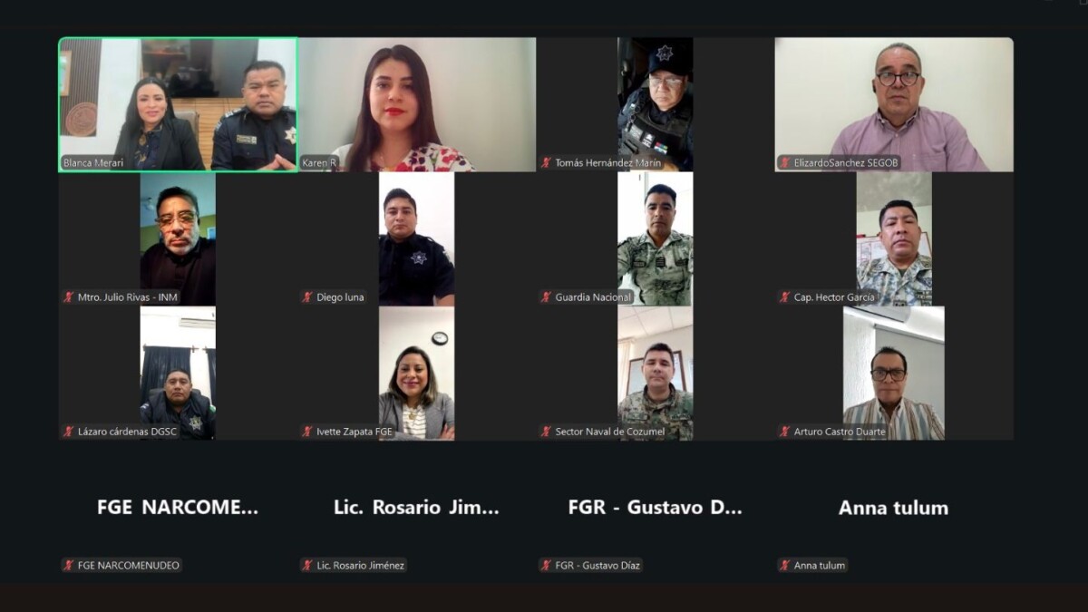 La presidenta municipal de Puerto Morelos, Blanca Merari Tziu Muñoz, participó este día, vía Zoom, en la Mesa de Coordinación para la Construcción de Paz, espacio de análisis y seguimiento de las acciones en materia de seguridad pública que se desarrollan de manera conjunta entre los tres órdenes de gobierno.