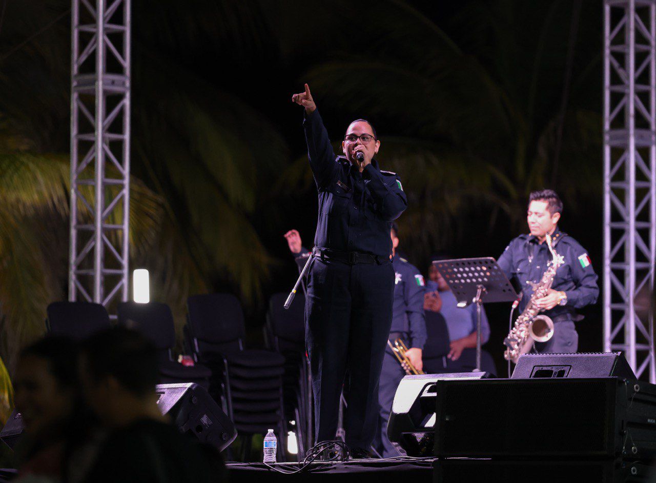 La presidenta municipal Blanca Merari Tziu Muñoz agradeció a la Banda Sinfónica y Coro de la Secretaría de Marina-Armada de México por elegir a Puerto Morelos para ofrecer un espectáculo sin precedentes.