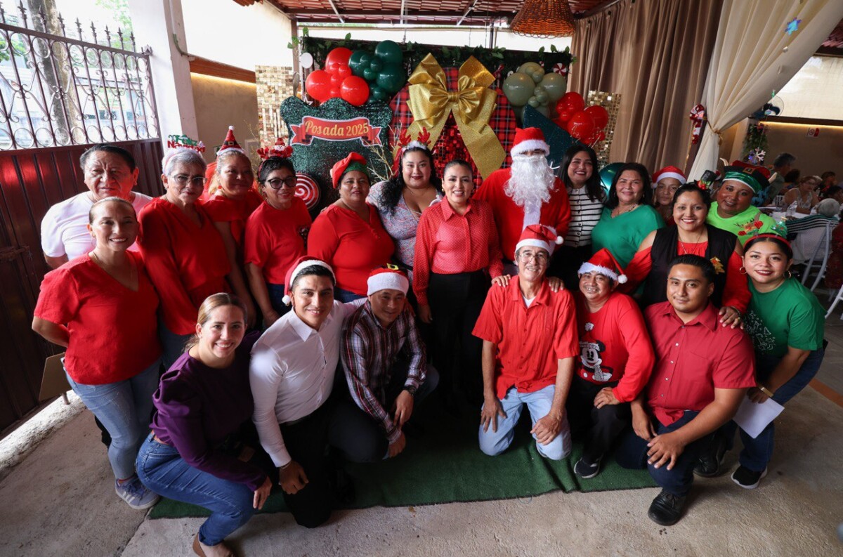 La celebración incluyó una esperada rifa de regalos que contempló electrodomésticos, cobertores, ventiladores y pantallas, además del tradicional corte de un gran pastel. El evento cobró vida con la presentación del Coro Nohoch Uinic, que interpretó emotivos villancicos, y con un espectáculo de comedia musical a cargo de un imitador de Juan Gabriel, que puso a cantar y bailar a todos los presentes.