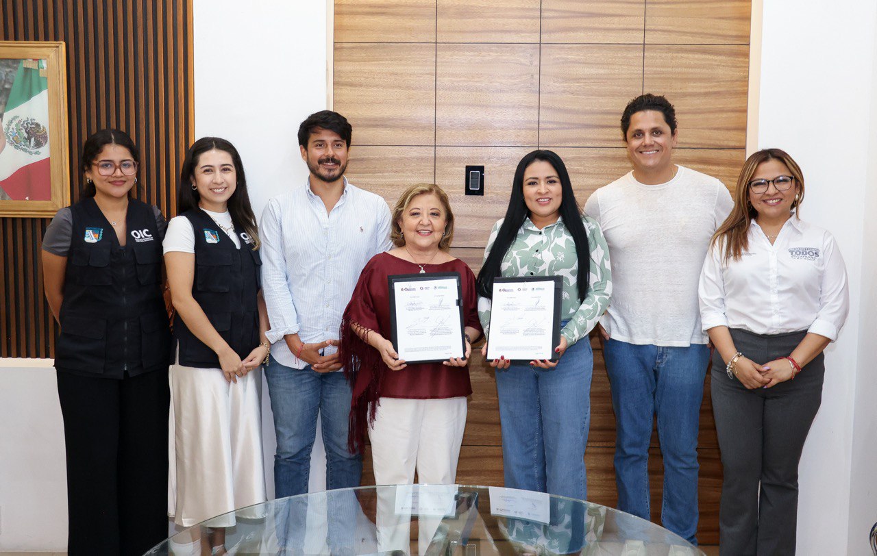 Puerto Morelos.- “Trabajar por la transparencia y la calidad en el servicio desde la administración pública, cierra el camino a la corrupción y reafirma la confianza ciudadana”, señaló la presidenta Blanca Merari Tziu Muñoz en la firma de Convenio de Colaboración para el Uso del Sistema de Evaluación y Seguimiento de Control Interno y Sistema de Excelencia en el Servicio con la titular de la Secretaría Anticorrupción y Buen Gobierno (Sabgob) de Quintana Roo, Reyna Arceo Rosado.