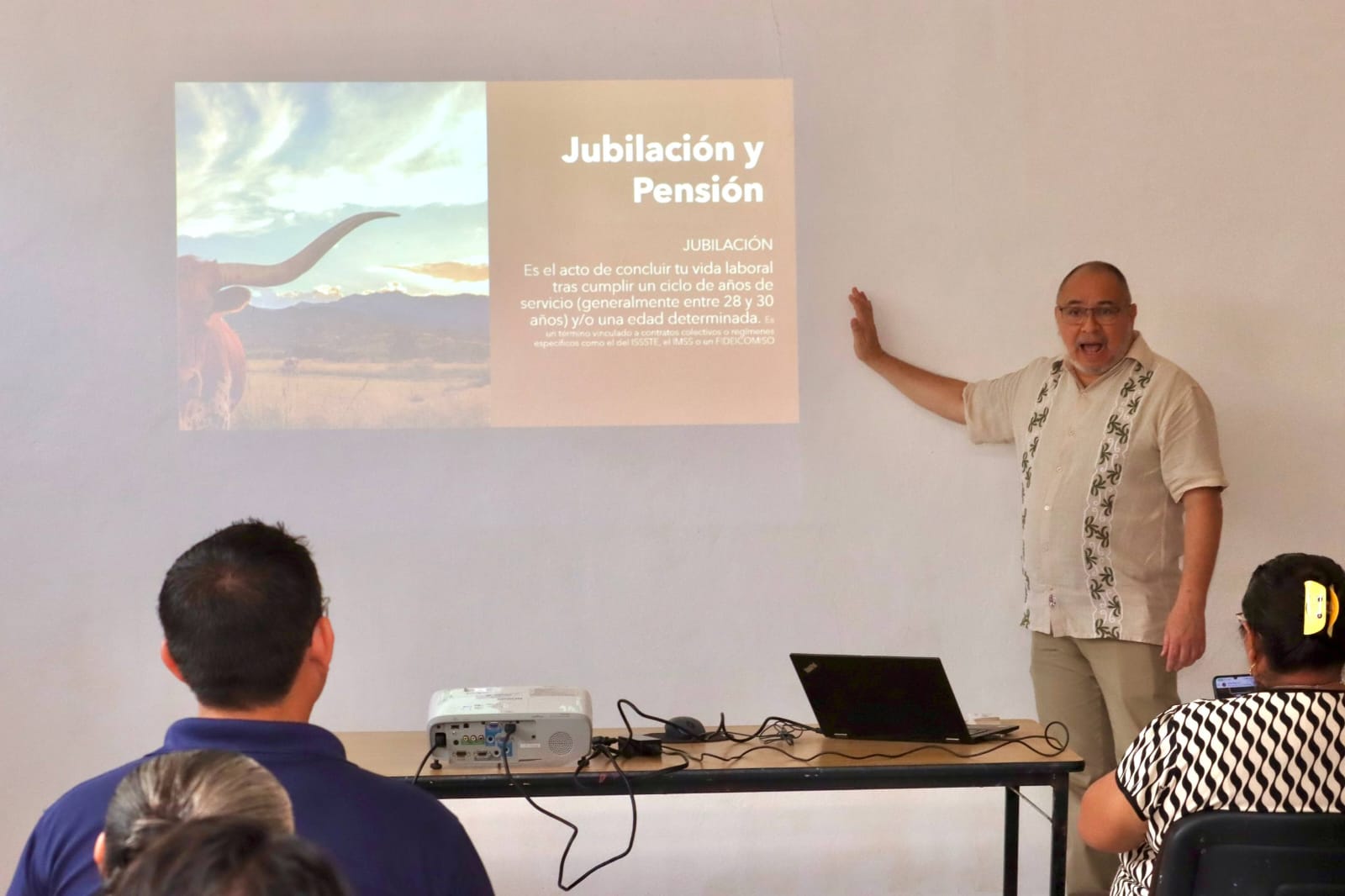 La jornada de formación estuvo a cargo del asesor Iván Esquível Molina, representante de GMX Seguros, quien desarrolló una exposición técnica y práctica sobre el Sistema Mexicano de Pensiones, abordando las diferencias entre jubilación y pensión, así como las características del régimen del IMSS, ISSSTE y el sistema privado.