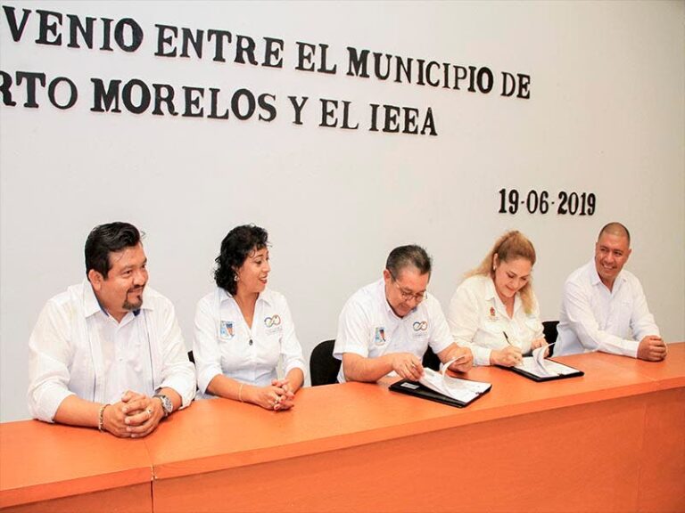Con el objetivo de abatir el rezago educativo en el municipio de Puerto Morelos, el gobierno de la presidenta municipal Laura Fernández Piña y el Instituto Estatal para la Educación de Jóvenes y Adultos (IEAA) firmaron esta mañana dos convenios para sumar esfuerzos y capacidades en este rubro.