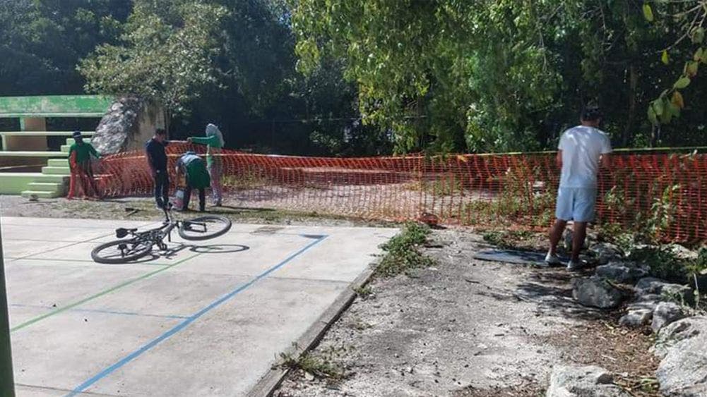 Inician obras «privadas» en parque público de Puerto Morelos.- Esta tarde, en momento álgido que se vive en esta cabecera municipal por la creciente inconformidad civil a un proyecto de construcción y equipamiento de plaza cívica y andador peatonal en la zona turística del puerto; en el otro lado, la zona del pueblo, la densa colonia Joaquín Zetina Gasca, la Desarrolladora ITM parece aprovechar la coyuntura y ha “sellado” otro parque, colocando una malla de color naranja y lonas de “Propiedad privada” para supuestamente iniciar obra particular en una parte del predio del denominado Polideportivo Isaac Hamui, ubicado en el entronque de la avenida Zetina con calle Delfín.