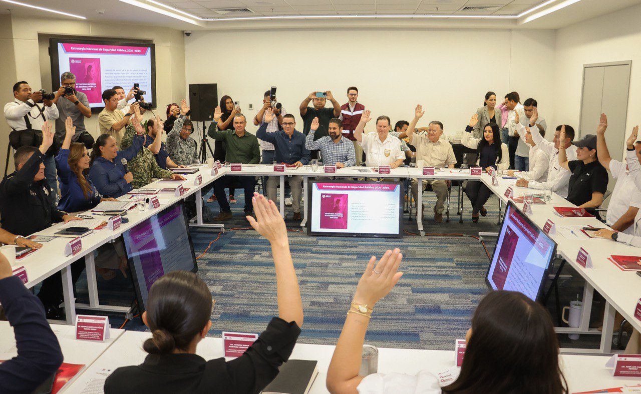 Durante la Sesión Extraordinaria del Consejo Estatal de Seguridad Ciudadana se presentó el Resumen Ejecutivo de la Estrategia Nacional de Seguridad Pública 2024-2030, en la que abordaron los 4 ejes que son: Atención a las causas; Consolidación de la Guardia Nacional; Fortalecimiento de la Inteligencia e Investigación y Coordinación absoluta en el Gabinete de Seguridad y las entidades federativas.