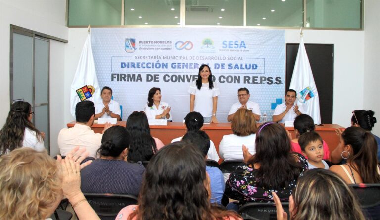 Con el objetivo de ampliar la cobertura de salud en el municipio de Puerto Morelos, la alcaldesa Laura Fernández Piña firmó esta tarde un convenio de colaboración con el Gobierno de Quintana Roo, por conducto de Régimen Estatal de Protección Social en Salud (REPSS) y su titular, Aída Gabriela Sosa Guerra.