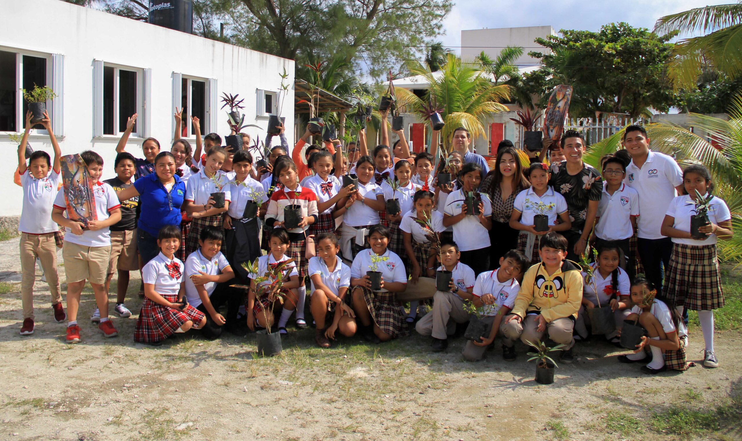 Como parte de estos talleres se realizó una jornada de reforestación en el plantel ubicado en la zona turística del destino, en la que se sembraron 210 plantas endémicas de la región, acción que fue agradecida por la directora María Guadalupe Cohuo Cahuich.