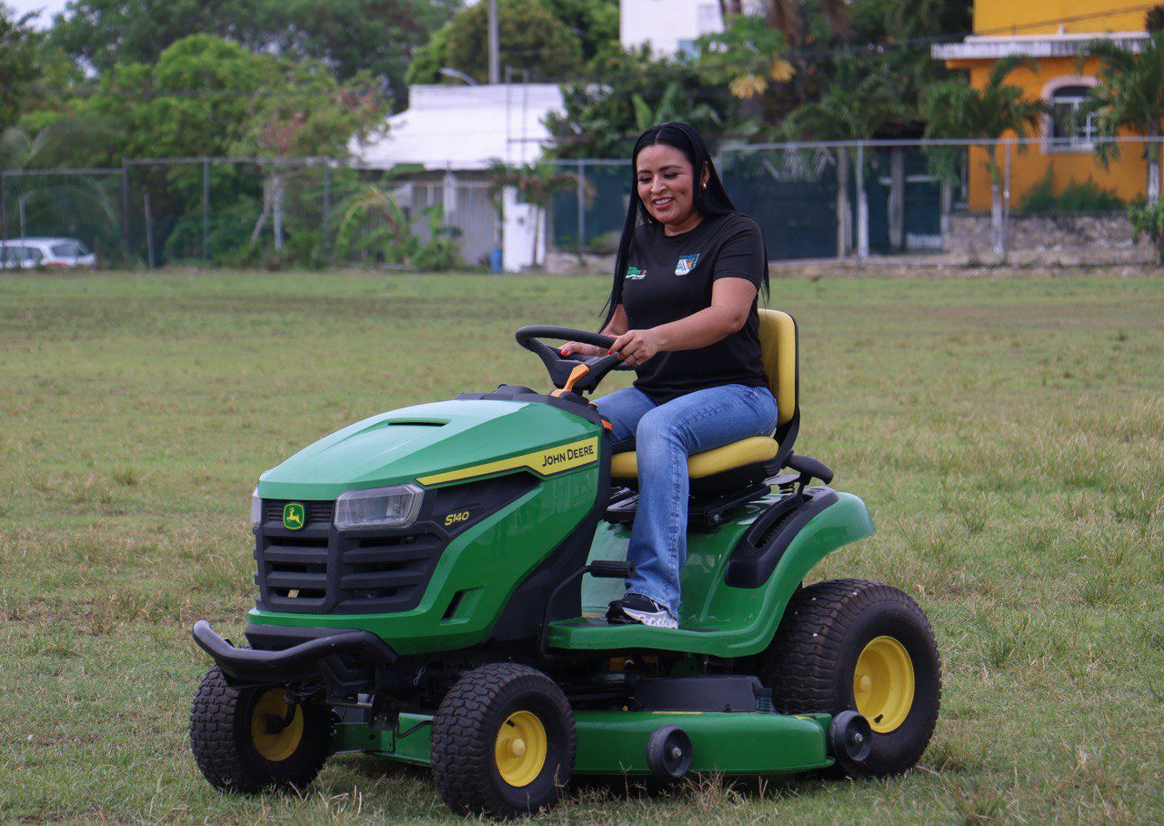 La presidenta municipal de Puerto Morelos entregó a la Dirección General del Instituto del Deporte, equipamiento para la poda de los campos deportivos en el municipio.