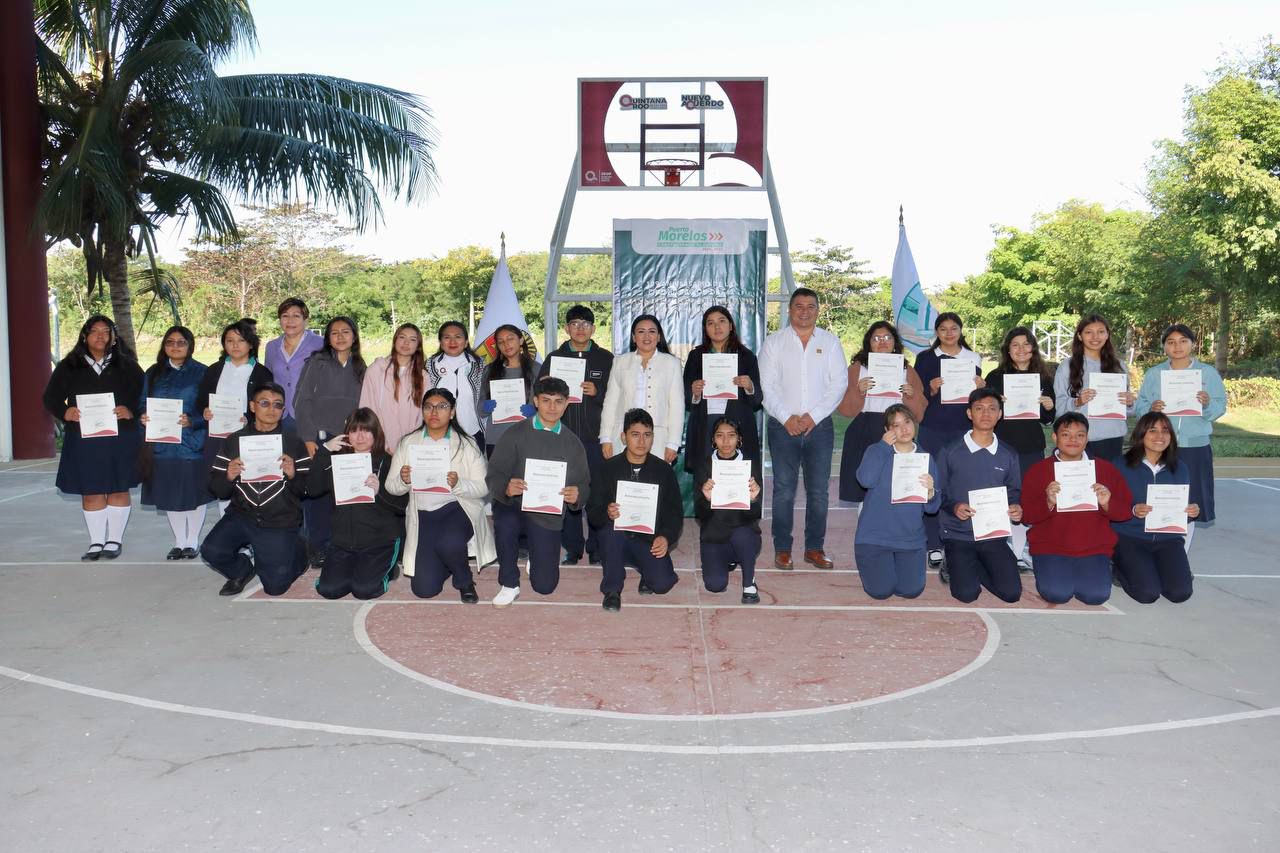 Durante el evento, autoridades municipales hicieron entrega de reconocimientos a 21 estudiantes con los mejores promedios, que van de 9.5 a 10, como incentivo al esfuerzo, la constancia y el desempeño académico.