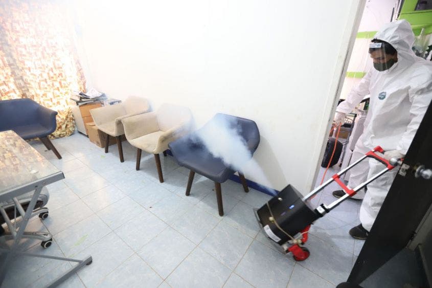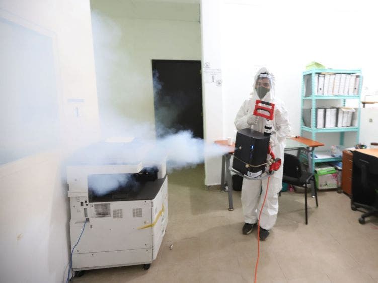 Al respecto, el director de Servicios Generales, Leonel Salazar, encargado de la higienización de oficinas del gobierno municipal, explicó que su equipo realiza una nebulización a fondo diariamente al término de cada jornada laboral, con un líquido especial amigable con el medio ambiente y que no afecta a las personas.