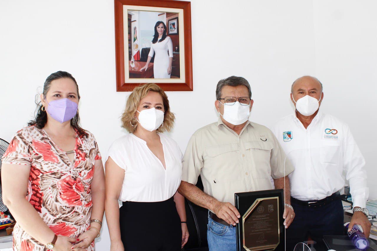 En la entrega del reconocimiento, que tuvo lugar en el Palacio Municipal, también estuvieron presentes el director de Capacitación en Calidad de Puerto Morelos, José Francisco Ku Chi, y Yasmín Rubí Campos Cohuo, directora general de Servicios Escolares del Instituto Universitario de Alta Formación.