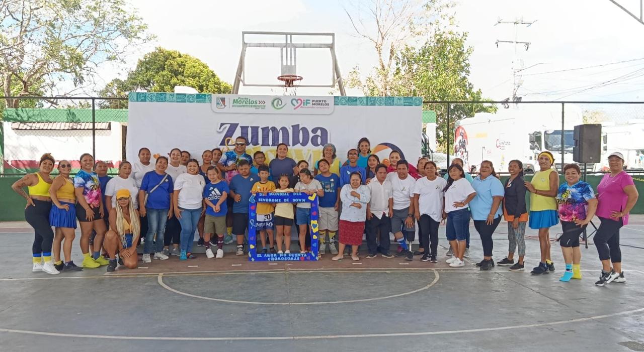 Puerto Morelos, Quintana Roo a 21 de marzo 2026.— Con gran entusiasmo y participación, el Sistema DIF Puerto Morelos llevó a cabo el evento Zumba Down, Bailando con el corazón, una actividad enfocada en promover la inclusión, la activación física y la sana convivencia en el marco del Día Mundial del Síndrome de Down, encuentro en el que participaron más de 30 personas, entre ellas niñas, niños, jóvenes y adultos con discapacidad, así como sus familias, quienes disfrutaron de una jornada llena de energía, música y unión.