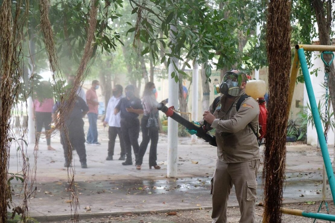 Las autoridades de educación visitaron el jardín de niños “Tereza de Jesús Magaña” (primera escuela que trabaja de manera presencial en Puerto Morelos), así como la escuela “Aquiles Serdán” de nivel preescolar, en donde el personal de Vectores de la Secretaría de Salud, acudió a fumigar el plantel debido a la plaga de termitas que daño parte de las puertas de las aulas.