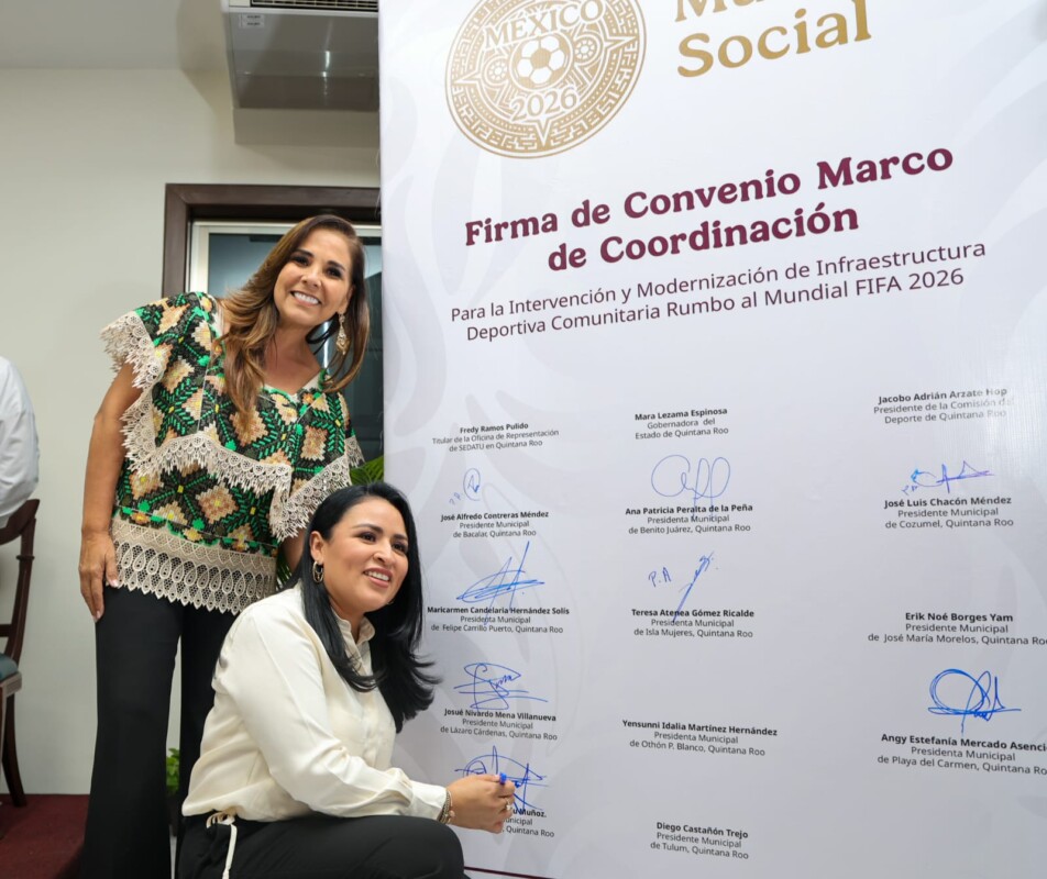 La presidenta municipal, Blanca Merari, formó parte de la firma del Convenio Marco de Coordinación del Proyecto Mundial Social 2026, encabezado por la gobernadora Mara Lezama Espinosa y liderado por la presidenta de México, Dra. Claudia Sheinbaum Pardo, una iniciativa que busca acercar el deporte a las comunidades como una herramienta de desarrollo social.