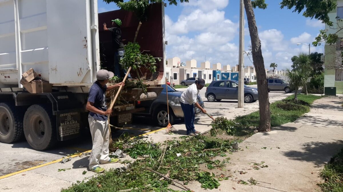 En este sentido, comentó que este sábado, desde temprana hora, continuaron los trabajos para retirar el material vegetal de camellones en avenidas principales de la comunidad como la Javier Rojo Gómez y la Niños Héroes, que se ubican en el Casco Antiguo y son arterias por las que transitan a diario los turistas.