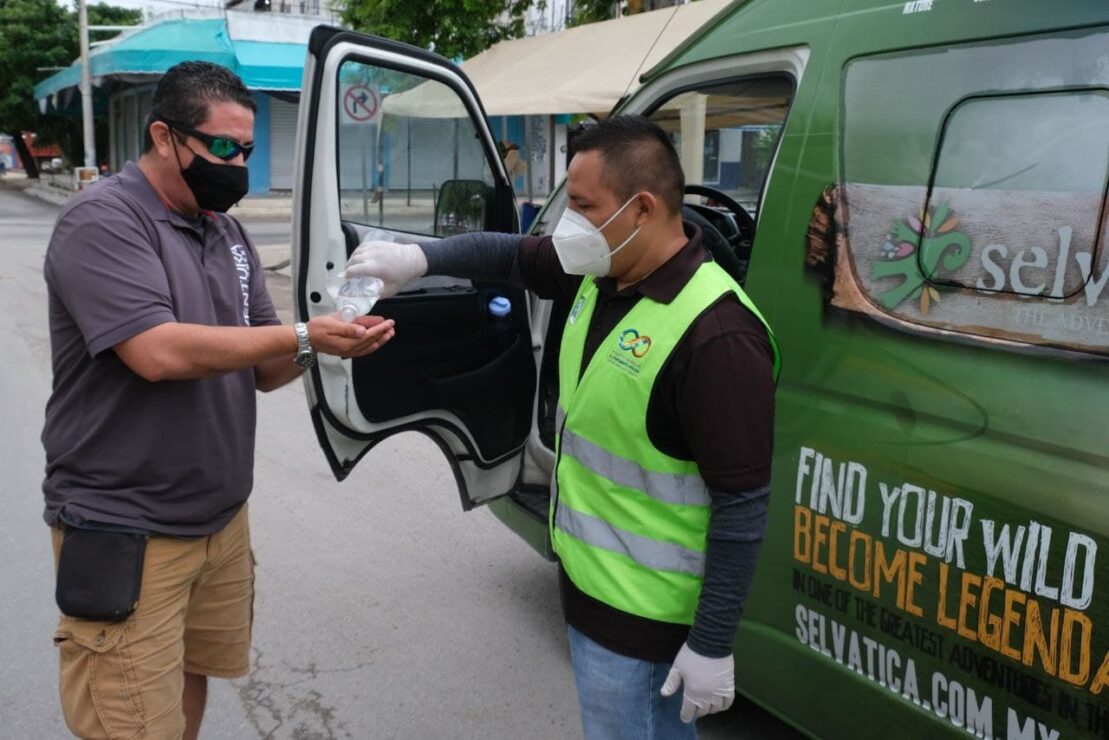 “Este trabajo se lleva a cabo en coordinación con el Gobierno del Estado, por lo que jóvenes de Puerto Morelos visitan paraderos de transporte público, entradas a supermercados, accesos a las playas públicas, entre otros puntos, incluida la delegación de Leona Vicario, para repartir gel antibacterial y cubre bocas a quienes no cuenten con uno”, explicó.