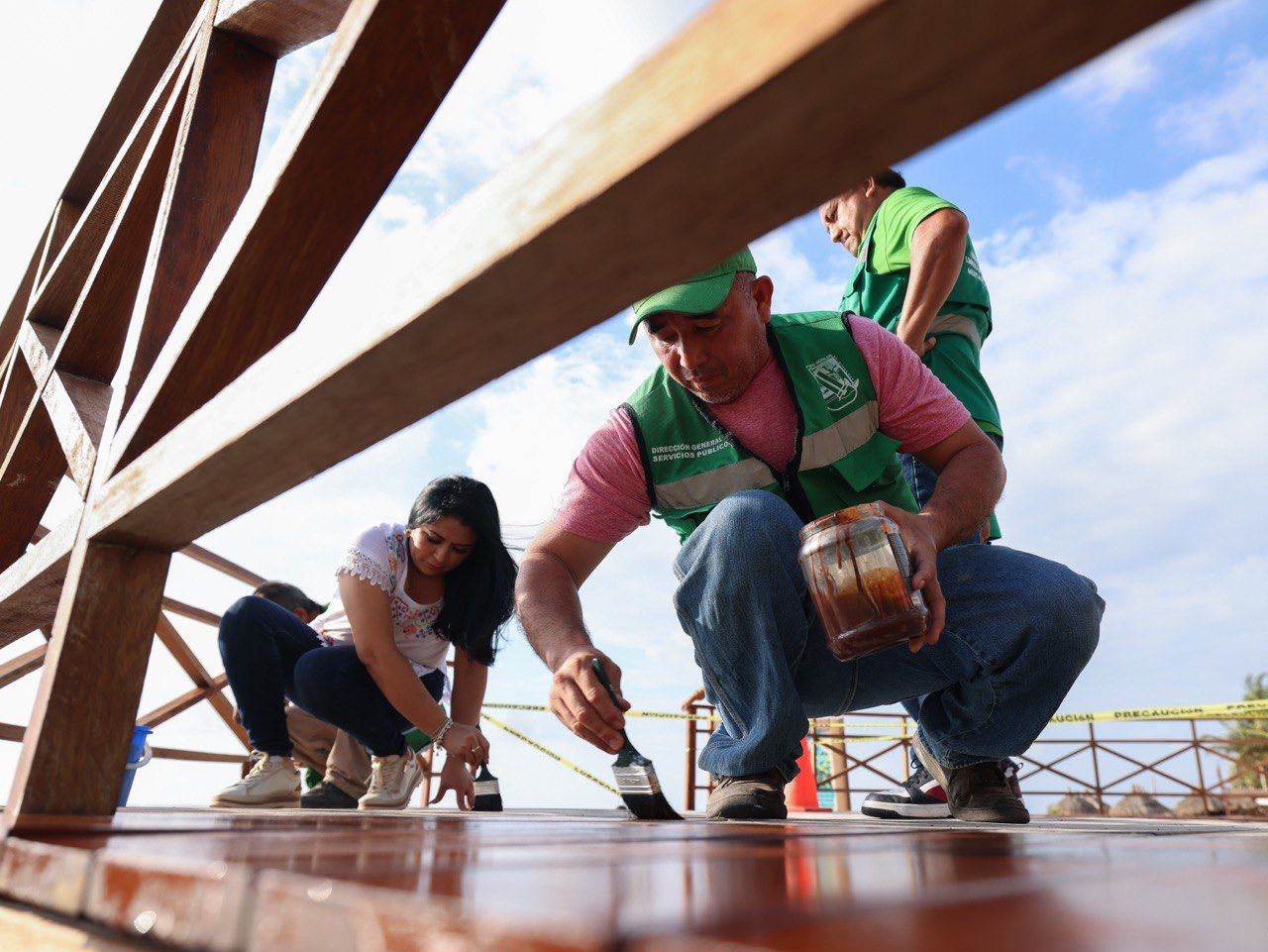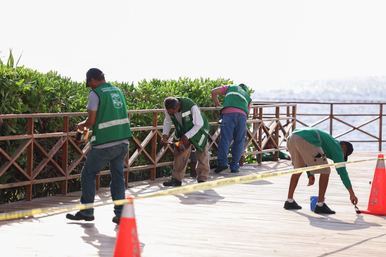 Por su parte, el titular de Servicios Públicos informó que los decks cuentan con una extensión de 374 metros cuadrados el acceso 6, y 405 metros cuadrados acceso 5, ambos con barandales, los cuales están siendo intervenidos con pintura especializada Woox 365, diseñada para muelles de madera por su alta durabilidad. Asimismo, se utiliza pintura amarilla en guarniciones y negra en estructuras metálicas, incluidas las destinadas a bicicletas.