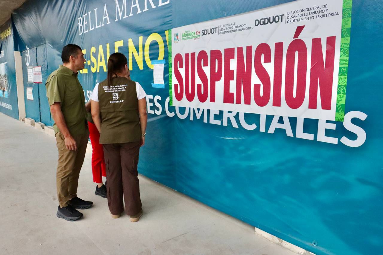 El pasado viernes 23 de enero, la Secretaría de Desarrollo Urbano y Ordenamiento Territorial de Puerto Morelos procedió, en cumplimiento a las leyes y reglamentos aplicables correspondientes, a la suspensión de las obras que se estaban ejecutando en el desarrollo conocido como Bella Mare Condos & Shopping Mall.