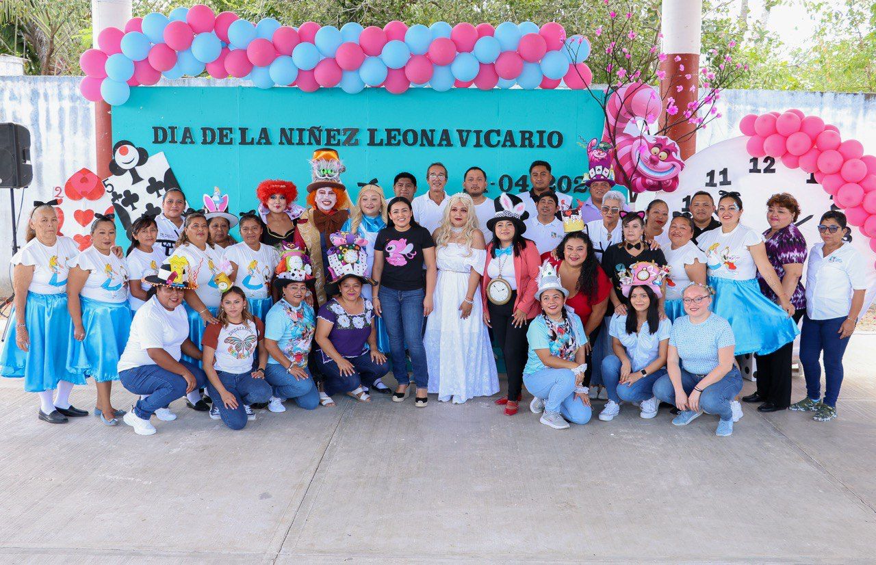 Con motivo del evento, los colaboradores del DIF de Leona Vicario se caracterizaron como los personajes de Alicia en el País de las Maravillas –el regidor Reyes Antonio Chuc Pech dio vida al Sombrerero– y se contó con la participación de las botargas de Sonic y Stich, quienes participaron en juegos con las niñas y niños.
