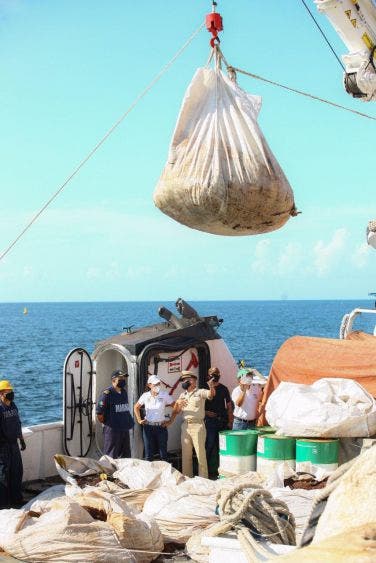 Cabe mencionar que el “Río Hondo” es una embarcación que adicionalmente a su función como buque de investigación, participa en la recolección de sargazo en altamar frente a las costas de Quintana Roo.